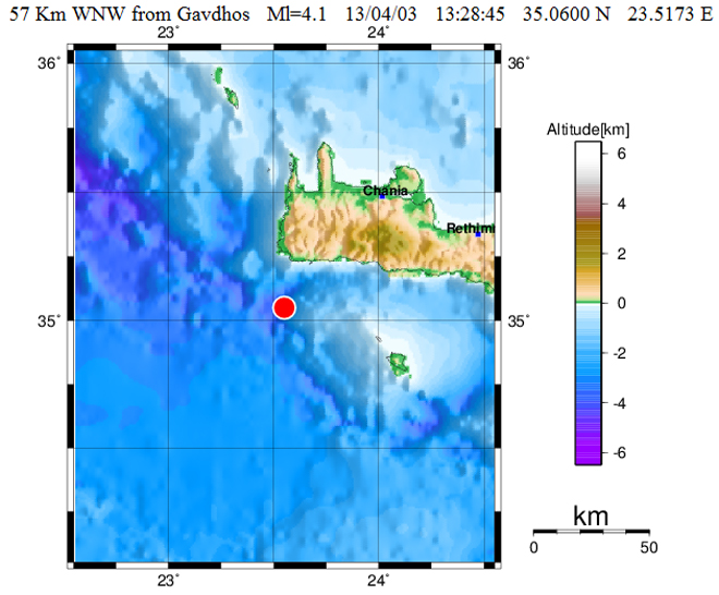 Σεισμική δόνηση 4,3 βαθμών της κλίμακας Ρίχτερ σημειώθηκε στις 13.28 το μεσημέρι στο θαλάσσιο χώρο νότια – νοτιοδυτικά της Κρήτης.