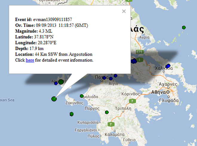 Ασθενής σεισμική δόνηση μεγέθους 4,3 βαθμών της κλίμακας Ρίχτερ σημειώθηκε στις 14.18 σήμερα το μεσημέρι στον θαλάσσιο χώρο ανάμεσα από τη Ζάκυνθο και τη Κεφαλονιά.