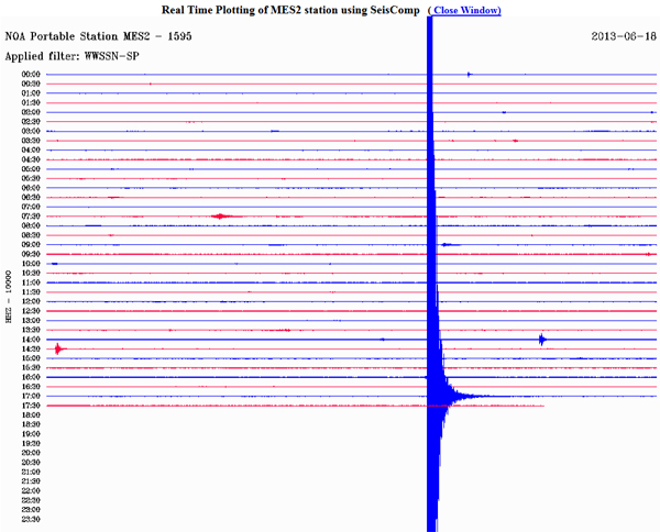 ΔΕΙΤΕ ΠΩΣ ΚΑΤΑΓΡΑΨΕ ΤΗ ΔΟΝΗΣΗ Ο ΣΕΙΣΜΟΓΡΑΦΟΣ ΤΟΥ ΓΕΩΔΥΝΑΜΙΚΟΥ ΙΝΣΤΙΤΟΥΤΟΥ ΠΟΥ ΕΙΝΑΙ ΕΓΚΑΤΕΣΤΗΜΕΝΟΣ ΣΤΗ ΜΕΘΩΝΗ: