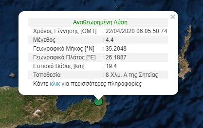 Σεισμός μεγέθους 4,4 Ρίχτερ σημειώθηκε νωρίς το πρωί της Τετάρτης στην Κρήτη...