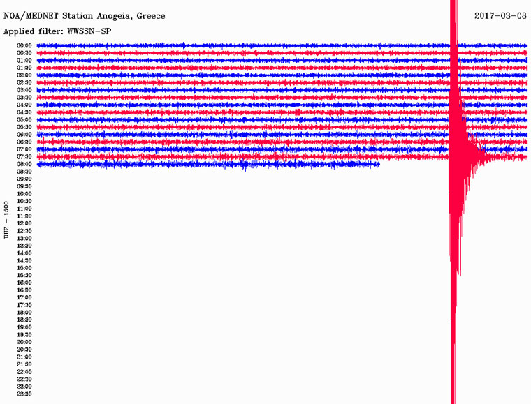 Δείτε πώς κατέγραψε τη δόνηση ο σεισμογράφος του Γεωδυναμικού Ινστιτούτου του Εθνικού Αστεροσκοπείου Αθηνών που είναι εγκατεστημένος στα Ανώγεια Ρεθύμνου: