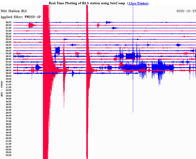 Δείτε πώς κατέγραψε τη δόνηση π σεισμογράφος του Γεωδυναμικού Ινστιτούτου του Εθνικού Αστεροσκοπείου Αθηνών που είναι εγκατεστημένος στο Ριόλο: