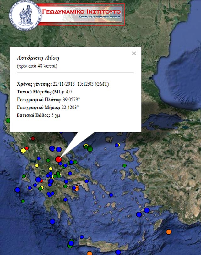 Το επίκεντρο του σεισμού εντοπίζεται 14 χλμ. βόρεια-βορειοδυτικά της Λαμίας ενώ το εστιακό του βάθος ορίζεται στα 5 χλμ.