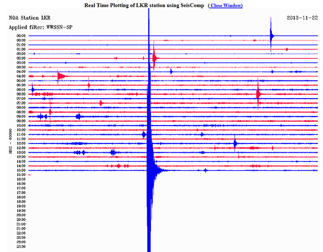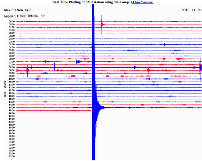 Δείτε πώς κατέγραψε τη δόνηση ο σεισμογράφος του Γεωδυναμικού Ινστιτούτου του Εθνικού Αστεροσκοπείου Αθηνών που είναι εγκατεστημένος στην Λοκρίδα:
