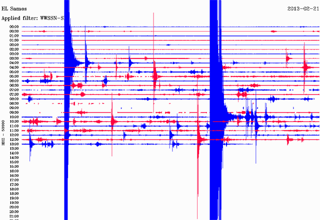 Δείτε πώς κατέγραψε τη δόνηση ο σεισμογράφος του Γεωδυναμικού Ινστιτούτου του Εθνικού Αστεροσκοπείου Αθηνών, που είναι εγκατεστημένος στη Σάμο.