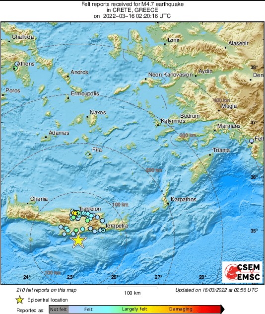 Σύμφωνα με το ευρωμεσογειακό σεισμολογικό κέντρο ο σεισμική δόνηση ήταν μεγέθους 4,7 βαθμών της κλίμακας Ρίχτερ.