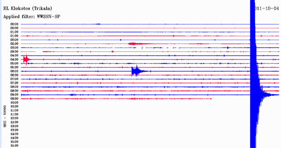 Δείτε πώς κατέγραψε τη δόνηση ο σεισμογράφος του Γεωδυναμικού Ινστιτούτου του Εθνικού Αστεροσκοπείου Αθηνών που βρίσκεται εγκατεστημένος στα Τρίκαλα