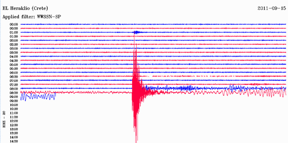 Δείτε πώς κατέγραψε τη δόνηση ο σεισμογράφος του Εθνικού Αστεροσκοπείου του Πανεπιστημίου Αθηνών που βρίσκεται εγκατεστημένος στο Ηράκλειο