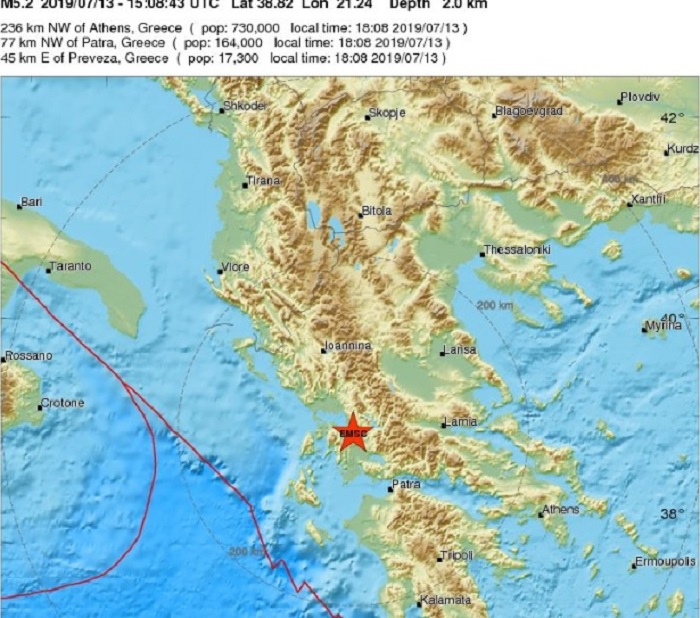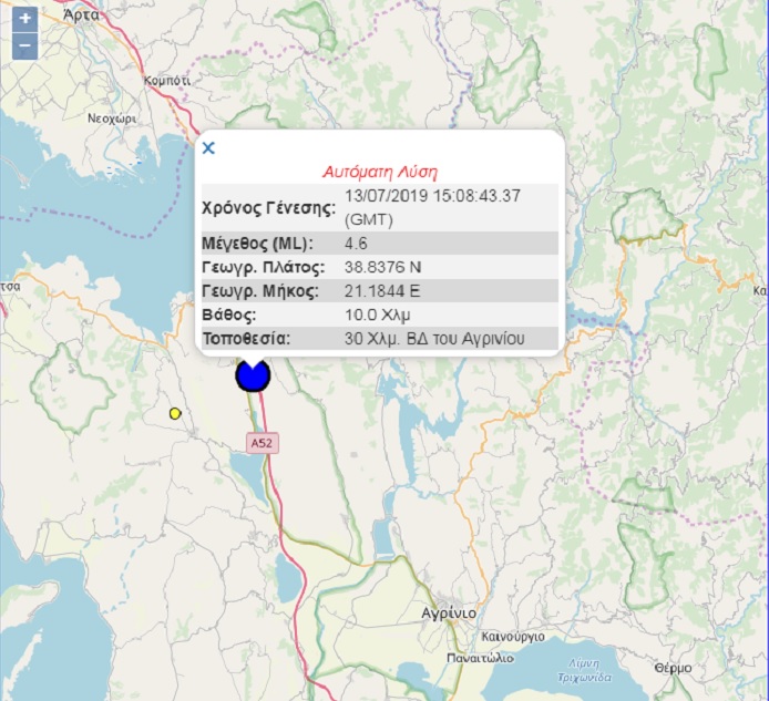 Το Ευρωμεσογειακό Σεισμολογικό Κέντρο δίνει ίδιο μέγεθος σεισμού με το επίκεντρο 5 χλμ νοτιοδυτικά των Σαρδηνίων Αμφιλοχίας και εστιακό βάθος 28 χλμ.