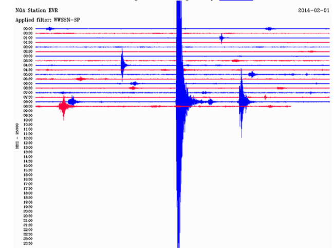 Δείτε πώς κατέγραψε τη δόνηση ο σεισμογράφος του Γεωδυναμικού Ινστιτούτου του Εθνικού Αστεροσκοπείου Αθηνών που είναι εγκατεστημένος στο χωριό Βίλλια: