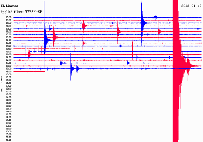 Δείτε πώς κατέγραψε τη δόνηση ο σεισμογράφος του Γεωδυναμικού Ινστιτούτου του Αστεροσκοπείου Αθηνών που είναι εγκατεστημένος στη Λήμνο: