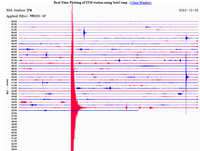Δείτε πώς κατέγραψε τη δόνηση ο σεισμογράφος του Γεωδυναμικού Ινστιτούτου του Εθνικού Αστεροσκοπείου Αθηνών που είναι εγκατεστημένος στην Ιθώμη: