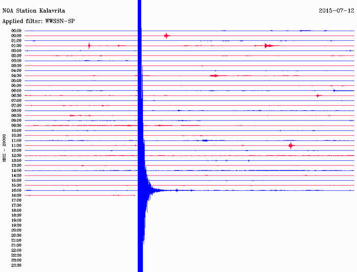 Δείτε πώς κατέγραψε τη δόνηση ο σεισμογράφος του Γεωδυναμικού Ινστιτούτου του Εθνικού Αστεροσκοπείου Αθηνών που είναι εγκατεστημένος στα Καλάβρυτα:
