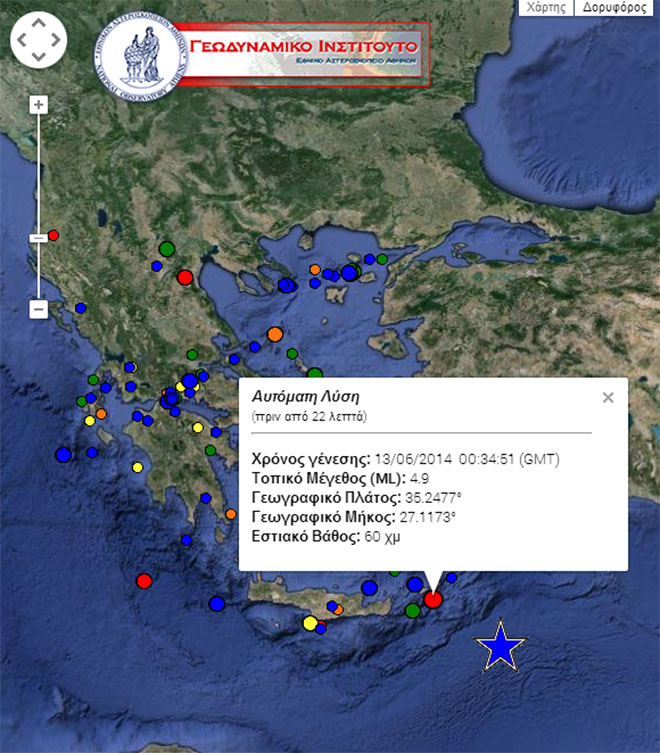 Σύμφωνα με ανακοίνωση που εξέδωσε το Γεωδυναμικό Ινστιτούτο της Αθήνας, η δόνηση καταγράφηκε στις 03.34 και το επίκεντρό της εντοπίστηκε σε απόσταση 400 χλμ. νοτιοανατολικά της Αθήνας και 17 χλμ. βόρεια-βορειοανατολικά της Κάσου.