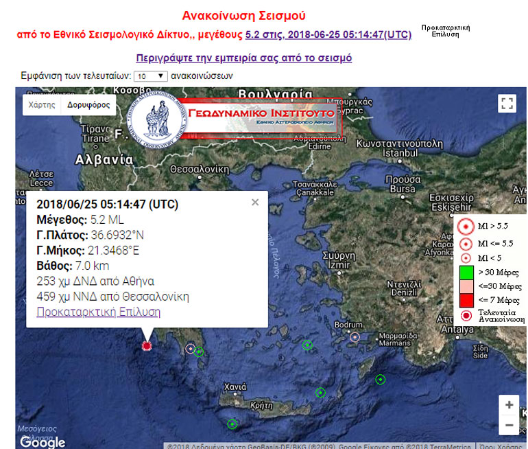 Η επίσημη ανακοίνωση του Γεωδυναμικού Ινστιτούτου του Εθνικού Αστεροσκοπείου Αθηνών: