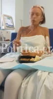Είναι η 45χρονη γυναίκα, που χαροπάλευε εννέα ολόκληρους μήνες και κατάφερε να ζήσει μετά από μια απίστευτη ιστορία συγκάλυψης ιατρικού λάθους στο νοσοκομείο του Ρεθύμνου. Η γυναίκα στην αποκλειστική εικόνα που δημοσιεύει σήμερα το Politica.gr την δείχνει σκελετωμένη, μόλις 35 κιλά, με ρινική κάνουλα οξυγόνου, καθισμένη για πρώτη φορά μετά από 20 ημέρες στη ΜΕΘ, να προσπαθεί να φάει μια μπουκιά στερεάς τροφής.