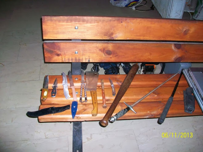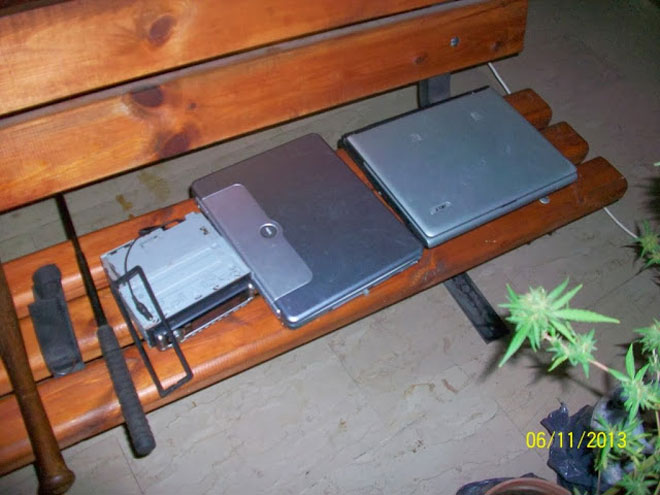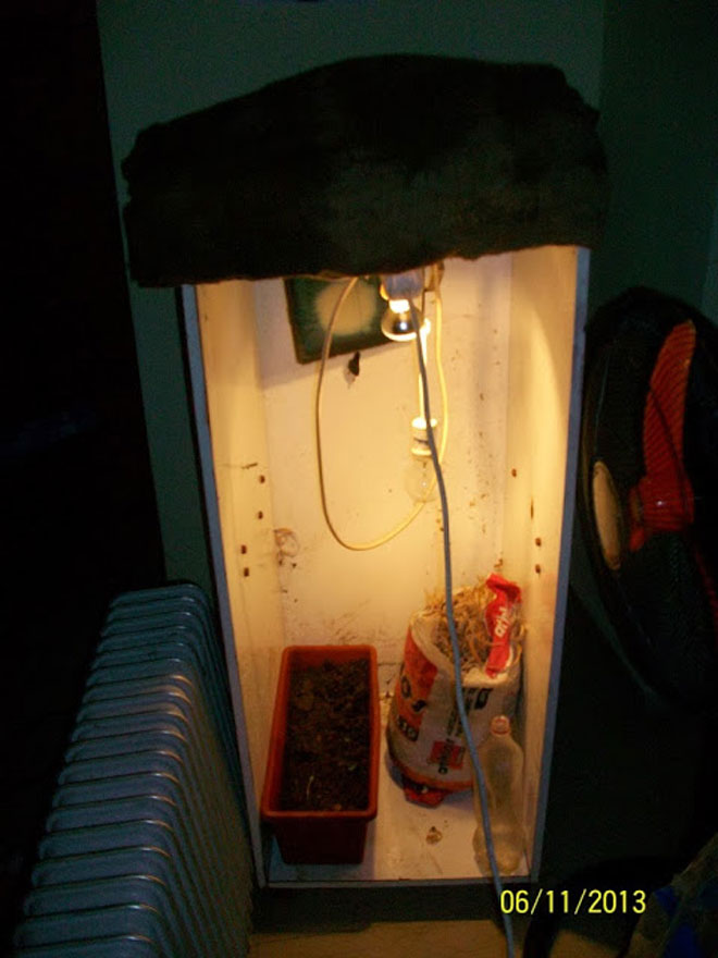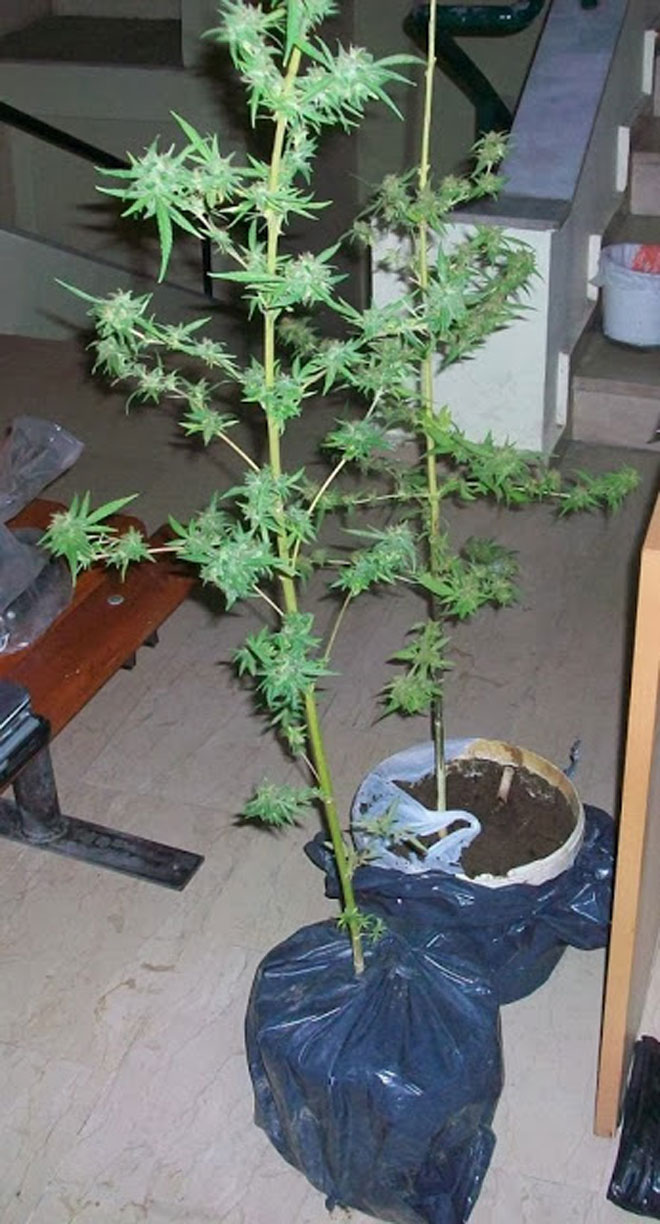 Αναλυτικά, στο οίκημα βρέθηκαν και κατασχέθηκαν επτά φυτά κάνναβης ύψους 0,04 έως δύο μέτρων, μια αυτοσχέδια ξύλινη κατασκευή υδροπονικής καλλιέργειας αποτελούμενη από τρεις ειδικές λάμπες φωτισμού, ένα καλοριφέρ, ένας ανεμιστήρας, 23 συσκευασίες και τρία κυτία με ακατέργαστη κάνναβη συνολικού βάρους 1.156 γραμμαρίων, επτά μαχαίρια συνολικού μήκους 12 έως 69 εκατοστών, ένα ξιφίδιο μήκους 69 εκατοστών, ένα σιδερένιο πτυσσόμενο γκλοπ μήκους 54 εκατοστών, ένα ξύλινο γκλοπ μήκους 50 εκατοστών, δύο ζυγαριές ακριβείας, σπόροι κάνναβης, δύο συσκευασίες με λίπασμα και φυτόχωμα, 52 γλαστράκια, πλήθος κενών νάιλον συσκευασιών, τρία κινητά τηλέφωνα και το χρηματικό ποσό των 20 ευρώ.