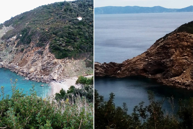 Αδύνατη είναι η πρόσβαση στην παραλία Βαθιάς, στο βόρειο τμήμα της Σκοπέλου, λόγω μεγάλης κατολίσθησης.