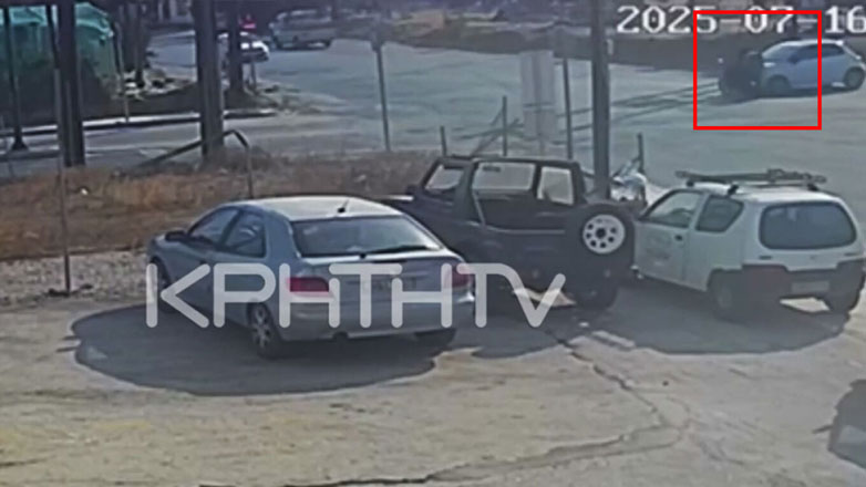 Σε βίντεο που δημοσιοποίησε το neakriti.gr, διακρίνεται μια μηχανή να συγκρούεται με διερχόμενο αυτοκίνητο και τον οδηγό της να εκσφενδονίζεται προς το οδόστρωμα.