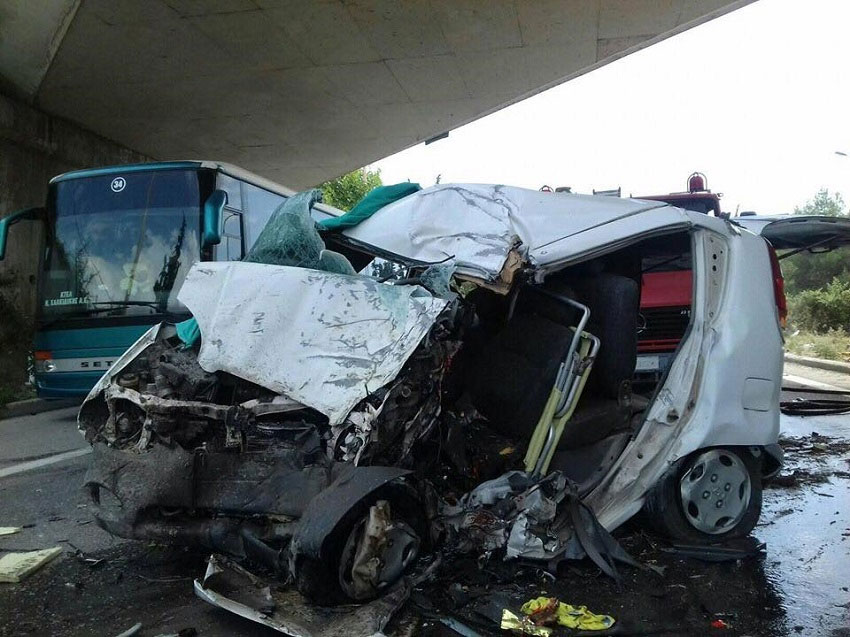 Οι φωτογραφίες από το σημείο σοκάρουν, καθώς όπως φαίνεται το Ι.Χ. μετά την πρόσκρουση, μετατράπηκε σε μία άμορφη μάζα σιδερικών.