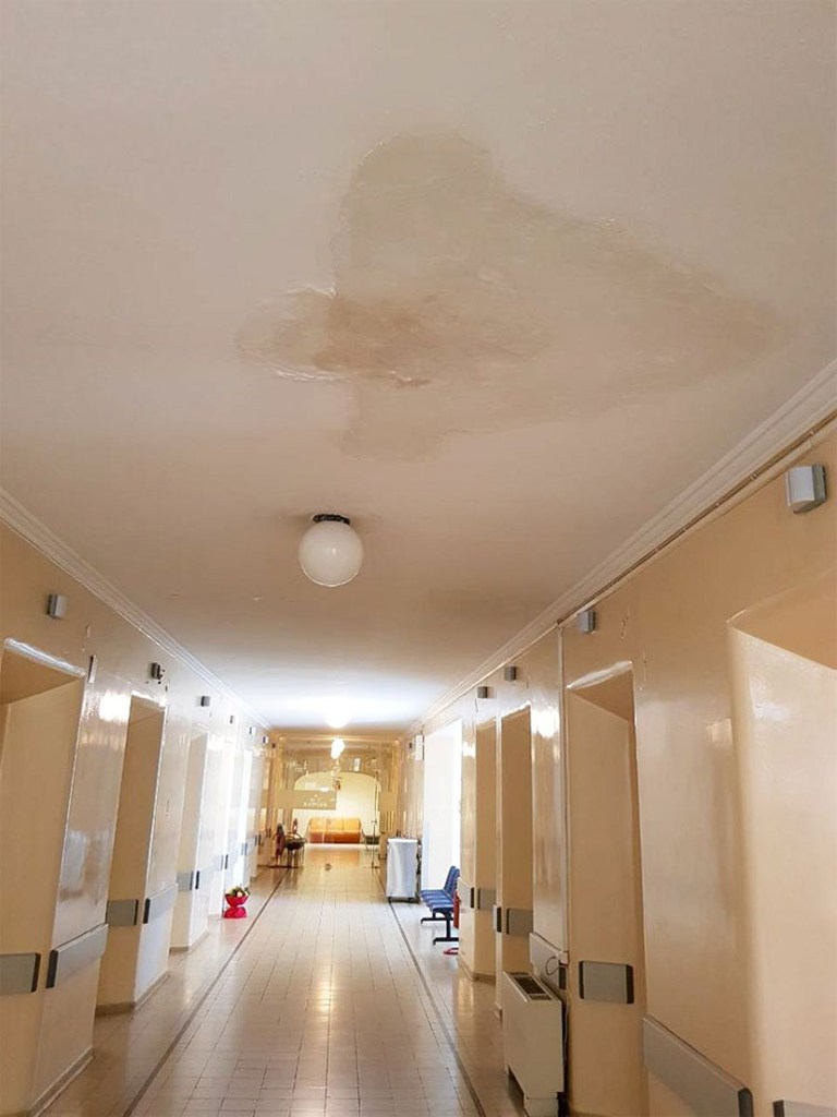 «Όλο το Νοσοκομείο στάζει. Πρέπει για να μην βραχείς να κρατάς ομπρέλα στους θαλάμους ασθενών και τους διαδρόμους. Τα εν λόγω κλιματιστικά που δεν λειτουργούν χρησιμοποιούνται για θέρμανση το χειμώνα, καθ’ ότι το Νοσοκομείο δεν διαθέτει καλοριφέρ στους θαλάμους ασθενών» υπογραμμίζει η ανακοίνωση.