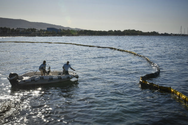 Πρώτο λάθος: Το αντιρρυπαντικό φράγμα -που θα έπρεπε να είναι απορροφητικό-  δεν τοποθετήθηκε σε μια έκταση που θα κάλυπτε όλα τα σημεία εκροής του μαζούτ από το ναυάγιο, ώστε να συγκεντρώνεται σε μια συγκεκριμένη αποκλεισμένη περιοχή και εν συνεχεία να απαντληθεί. Αντ΄ αυτού τοποθετήθηκε μια «κουλούρα» μικρών διαστάσεων πάνω από το ναυάγιο, οπότε τα ρεύματα και ο αέρας παρέσυραν τα μολυσμένα νερά κάτω από το φράγμα, κι έτσι δημιουργήθηκε η κηλίδα.