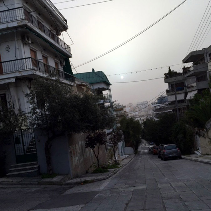 Το πρωί της Κυριακής η ορατότητα ήταν περιορισμένη στην Αθήνα, καθώς ένα πυκνό πέπλο σκόνης είχε καλύψει τον ήλιο. Η μεταφορά της αφρικανικής σκόνης ευνοήθηκε από τους ισχυρούς νοτιάδες.