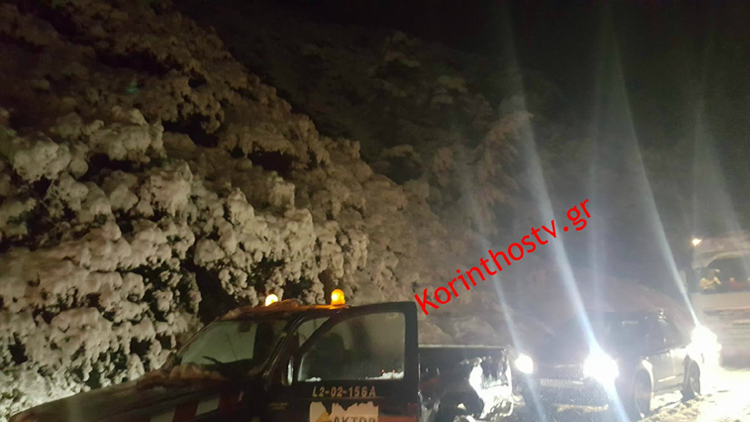 Κλειστό παραμένει το τμήμα της νέας Ε.Ο. Πατρών – Κορίνθου από την Ακράτα μέχρι το Αίγιο λόγω της χιονόπτωσης, ενώ μέχρι και το πρωί της Κυριακής παρέμεναν αρκετοί οδηγοί εγκλωβισμένοι.