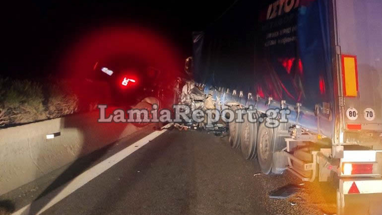 Με έναν ελιγμό της τελευταίας στιγμής, δεν καρφώθηκε στο πίσω μέρος του φορτηγού, αλλά καβάλησε το διάζωμα καταλήγοντας στο πλάι και μπροστινό μέρος του ενός φορτηγού.