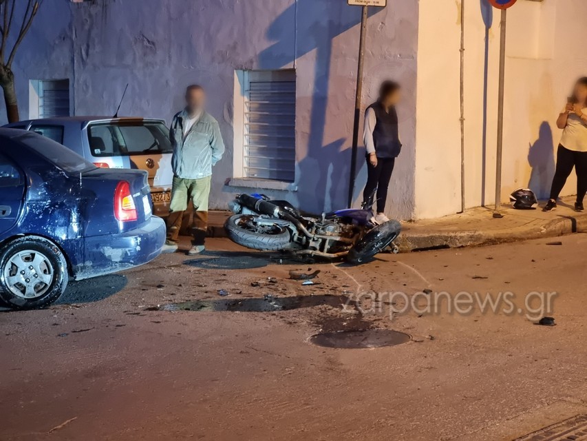 Ένα ακόμα τροχαίο ατύχημα σημειώθηκε λίγο πριν τις 9 το βράδυ του Σαββάτου στα Χανιά. Ένα ΙΧ αυτοκίνητο συγκρούστηκε με μοτοσικλέτα που οδηγούσε ένας άνδρας, στη συμβολή των οδών Αναγνώστου Μάντακα και Ζυμβρακάκηδων.