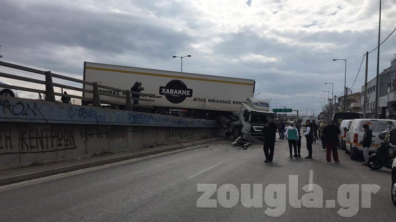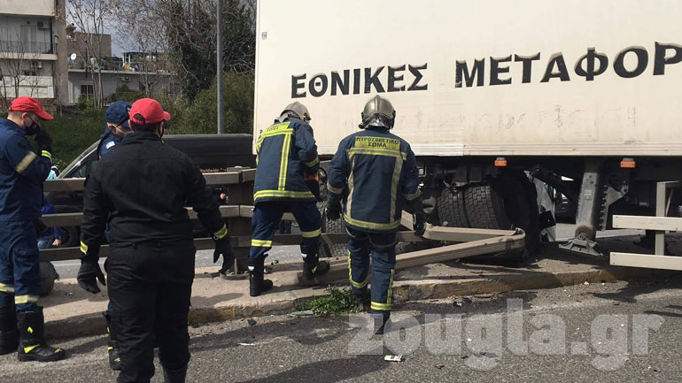 Οι πρώτες πληροφορίες κάνουν λόγο για τρεις τραυματίες, ανάμεσά τους και ο οδηγός του φορτηγού, ο οποίος έχει τραυματιστεί και μεταφέρθηκε σε νοσκομείο. Όλα ξεκίνησαν όταν ο οδηγός της νταλίκας έκανε ελιγμό γιατί προσπάθησε να αποφύγει ένα προπορευόμενο όχημα, με αποτέλεσμα να χάσει τον έλεγχο του οχήματός του.