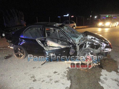 Σοβαρό τροχαίο σημειώθηκε λίγο πριν τις 20:30 στην Πρέβεζα στην διασταύρωση Καλαμιτσίου πριν την εθνική οδό. Αυτοκίνητο στο οποίο επέβαιναν δύο νεαρά άτομα, χτύπησε αρχικά σε μάντρα και στην συνέχεια κατέληξε στην μέση του δρόμου.