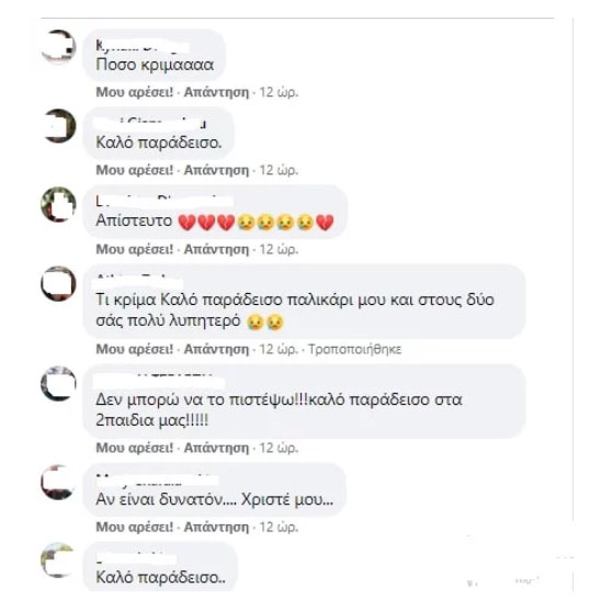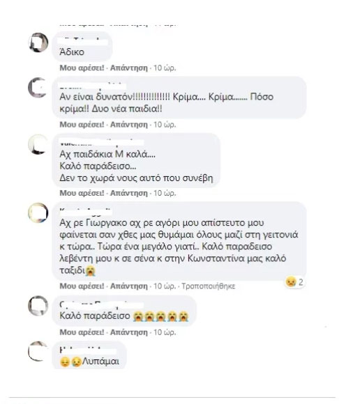 Αφού έγινε γνωστή η είδηση της δολοφονίας στη Μακρινίτσα, τα μέσα κοινωνικής δικτύωσης του Γιώργου και της Κωνσταντίνας «γέμισαν» από μηνύματα φίλων και γνωστών τους, οι οποίοι δεν κατάφεραν να κρύψουν τον θυμό τους για την απώλεια των δύο παιδιών.