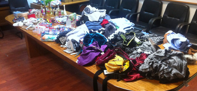 • Πλήθος κλοπιμαίων (καλλυντικά, αρώματα και ενδύματα).