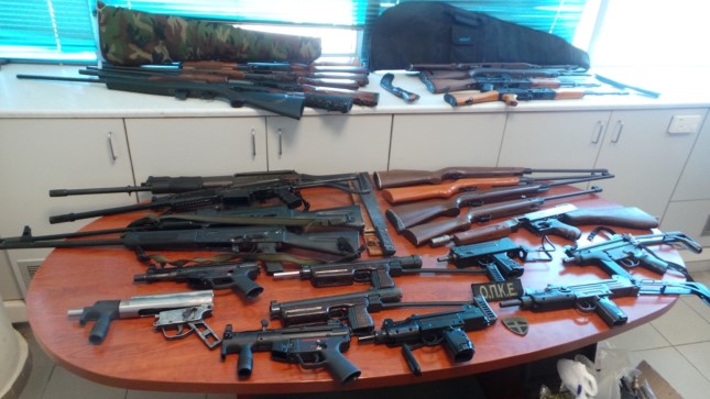 Κατά τη διάρκεια της επιχείρησης βρέθηκαν και κατασχέθηκαν περισσότερα από 40 όπλα διαφόρων ειδών -παλαιού και νέου τύπου- όπως καλάσνικοφ, αεροβόλα και κυνηγετικές καραμπίνες.
