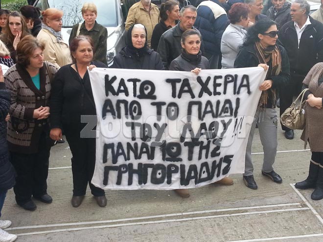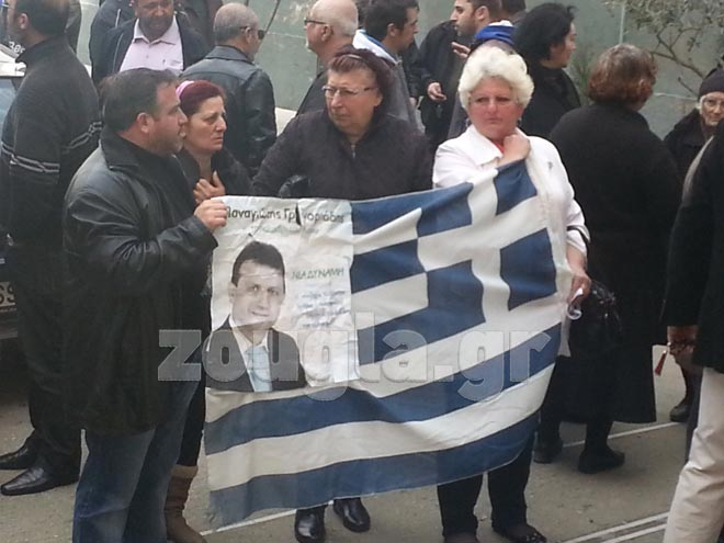 Στο πλευρό του βρίσκονται περίπου 100 κάτοικοι των Αχαρνών οι οποίοι βρίσκονται έξω από τα δικαστήρια με πανό και φωνάζουν συνθήματα συμπαράστασης.