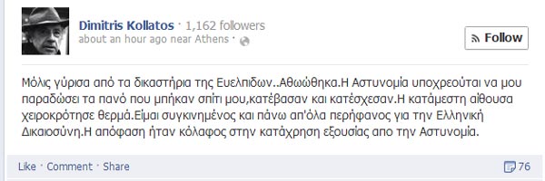 Μετά την αθωωτική απόφαση ο σκηνοθέτης έγραψε στο προφίλ του στο Facebook:
