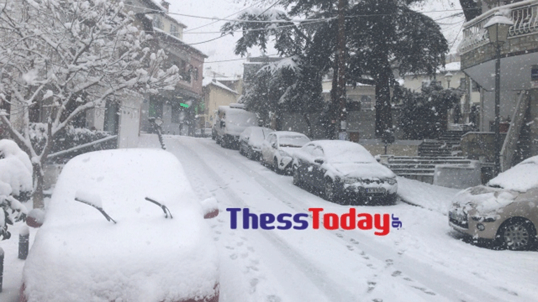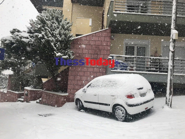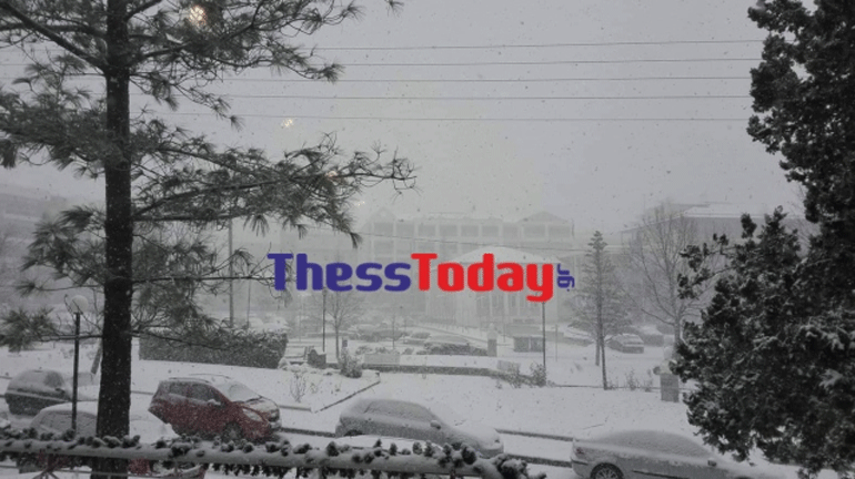 Στα λευκά «ντύθηκαν» αρκετές περιοχές της Θεσσαλονίκης. Έντονη ήταν η χιονόπτωση και στο κέντρο της πόλης.
