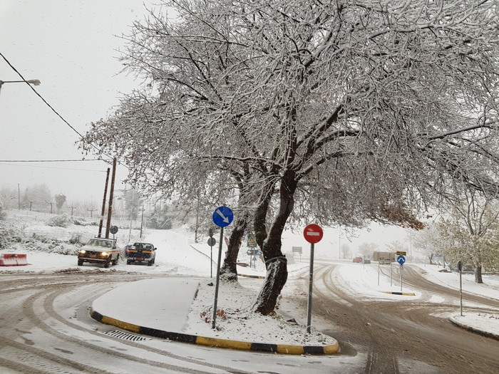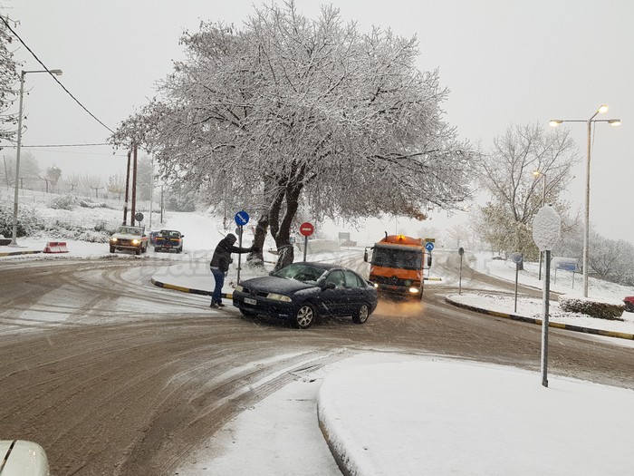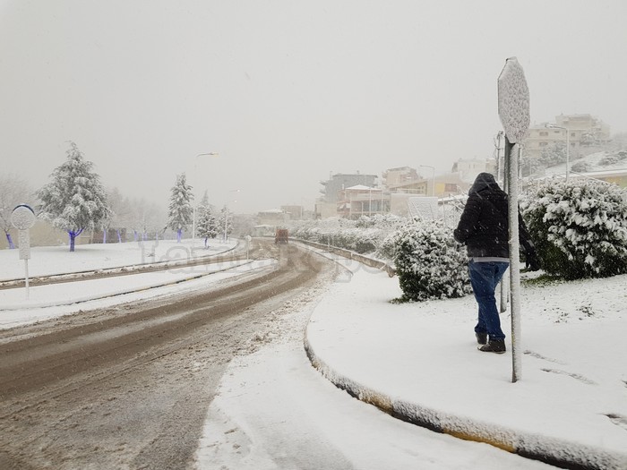 Πυκνή χιονόπτωση σημειώνεται από τις 08.00 το πρωί στην περιοχή της Λαμίας.