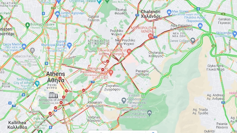 Πιο συγκεκριμένα, η κυκλοφορία των οχημάτων έχει σταματήσει στη λεωφόρο Βασιλίσσης Αμαλίας από το ύψος της Συγγρού έως και την αρχή της Βασιλίσσης Σοφίας. Παράλληλα η κίνηση έχει διακοπεί και στην οδό Πανεπιστημίου, ενώ αυξημένη κίνηση υπάρχει και στη λεωφόρο Κηφισίας στο ύψος του Αμαρουσίου αλλά και στο Νέο Ψυχικό όπου τα αυτοκίνητα κινούνται σχεδόν με μηδενικές ταχύτητες.
