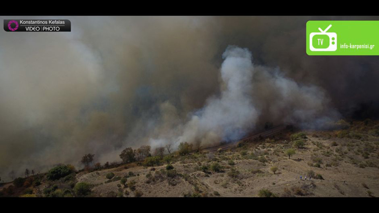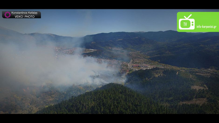 Σε εξέλιξη βρίσκεται μεγάλη πυρκαγιά που ξέσπασε νωρίς το μεσημέρι της Δευτέρας σε δασική έκταση έξω ακριβώς από το Καρπενήσι και έχει ήδη μετατρέψει σε στάχτες δεκάδες στρέμματα δάσους και χαμηλής βλάστησης, σταυλικές εγκαταστάσεις και μελίσσια, με τις φλόγες να απειλούν σπίτια και ξενοδοχειακές μονάδες.
