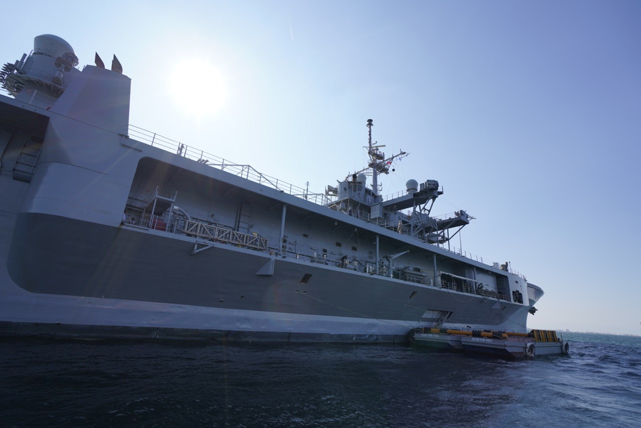 Το σκάφος δεν έδεσε για το σύνολο της παραμονής στο λιμάνι της πόλης που το φιλοξενεί εξαιτίας του μήκους του. “Είναι πολύ μεγάλο”, εξήγησε πριν την επιβίβαση η αξιωματικός Rose E.Rise στο ΑΠΕ- ΜΠΕ, σύνδεσμος του αμερικανικού Πολεμικού Ναυτικού στην Ελλάδα που συνόδευε τους επισκέπτες. Συγκεκριμένα το μόνο σημείο στο οποίο μπορούσε να “δέσει” το εκτοπίσματος 18.500 τόνων σκάφος ήταν η προβλήματα που είναι εμπορικά εκμεταλλεύσιμη και αυτή δεν μπορούσε να είναι διαθέσιμη για πολλές ημέρες. Μεγάλο σκάφος το USS Mount Whitney που κατασκευάστηκε από τα ναυπηγεία Newport News Shipbuilding Drydock Company και τέθηκε σε υπηρεσία το 1971, ενώ έχει συμμετάσχει σε επιχειρήσεις στον Ατλαντικό, τη Μεσόγειο, την Καραϊβική, τον Ινδικό, καθώς και στο Κέρας της Αφρικής. Τον Αύγουστο του 2008 είχε αποσταλεί στη Μαύρη Θάλασσα, προκειμένου να παράσχει ανθρωπιστική βοήθεια σε όσους είχαν πληγεί από τον πόλεμο Ρωσίας – Γεωργίας, ενώ από τον Μάρτιο του 2011 αποτέλεσε το κύριο σκάφος διοικήσεως για τη διεθνή επιχείρηση κατά της Λιβύης σε συγκεκριμένη περίοδο της.