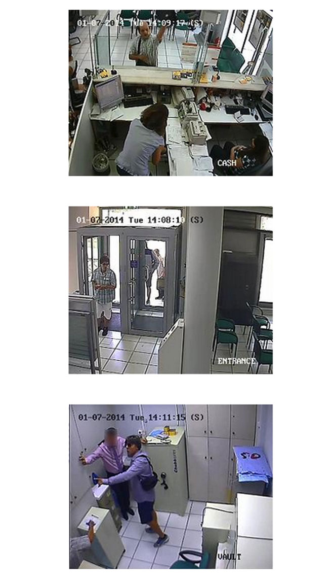 – τρεις φωτογραφίες από την ένοπλη ληστεία σε υποκατάστημα τράπεζας στο Δίστομο Βοιωτίας, την 22-08-2014