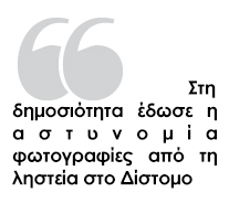 Στη δημοσιότητα έδωσε η Ασφάλεια Αττικής τις φωτογραφίες των δραστών της ληστείας στο Δίστομο Βοιωτίας και στον Μαραθώνα Αττικής, ενώ παράλληλα ανακοίνωσε την ταυτοποίηση των δακτυλικών αποτυπωμάτων των Σ. Δραβίλα και Σ. Χριστοδούλου που βρέθηκαν σε σπίτι που χρησιμοποιούσαν οι ληστές ως καταφύγιο στη Νέα Μάκρη.
