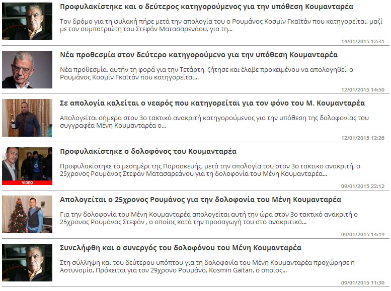Δόθηκαν στη δημοσιότητα, κατόπιν σχετικής Διάταξης της Εισαγγελίας Πρωτοδικών Αθηνών, τα στοιχεία ταυτότητας και φωτογραφίες του 26χρονου, ο οποίος συνελήφθη στις 5 Ιανουαρίου στο κέντρο της Αθήνας, από αστυνομικούς του Τμήματος Εγκλημάτων Κατά Ζωής & Προσωπικής Ελευθερίας της Διεύθυνσης Ασφάλειας Αττικής, για την ανθρωποκτονία του συγγραφέα Μένη Κουμανταρέα.