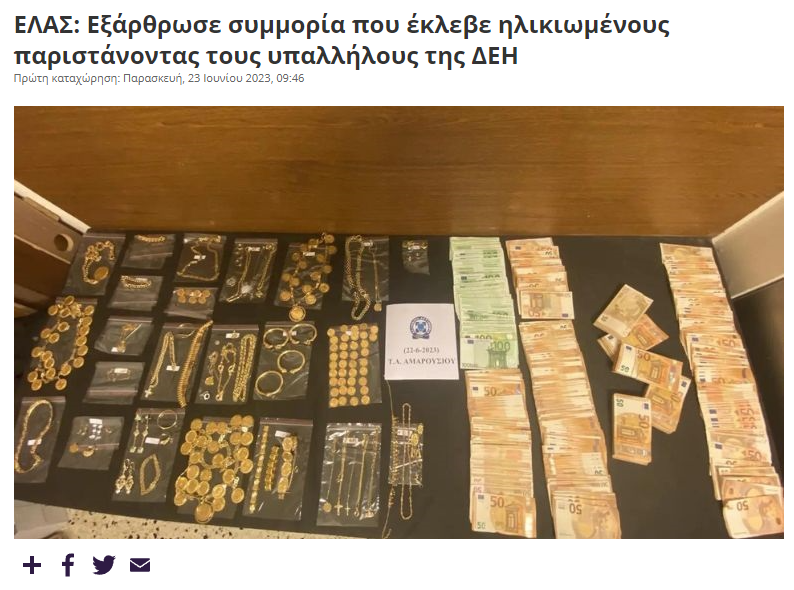 Δίνονται στη δημοσιότητα, κατόπιν σχετικής Διάταξης της Εισαγγελίας Πρωτοδικών Αθηνών, τα στοιχεία ταυτότητας και οι φωτογραφίες 15 ανδρών, μελών εγκληματικής οργάνωσης που διέπρατταν κλοπές από οικίες ηλικιωμένων στην Αττική, προσποιούμενοι υπαλλήλους του ΔΕΔΔΗΕ ή συντηρητές ανελκυστήρων και εξαρθρώθηκε την 22-6-2023 από το Τμήμα Ασφάλειας Αμαρουσίου, της Διεύθυνσης Ασφάλειας Αττικής (Σχετικό από 23-06-2023 Δελτίο Τύπου).