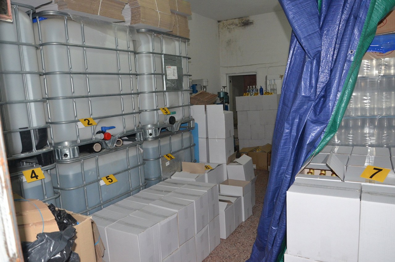 Σε συντονισμένη αστυνομική επιχείρηση που πραγματοποιήθηκε το διήμερο, 20 και 21 Ιουλίου 2017, σε περιοχές της Αττικής (Νίκαια, Άγιος Δημήτριος, Χαϊδάρι, Παιανία, Καματερό και Αχαρναί) και στη Ζάκυνθο, με συνδρομή Εισαγγελικών Λειτουργών, αστυνομικών των τοπικών Τμημάτων Ασφαλείας και στελεχών του Τελωνείου και του Γενικού Χημείου του κράτους, βρέθηκαν και κατασχέθηκαν από τους χώρους αποθήκευσης και διανομής των παράνομων ποσοτήτων αιθυλικής αλκοόλης: