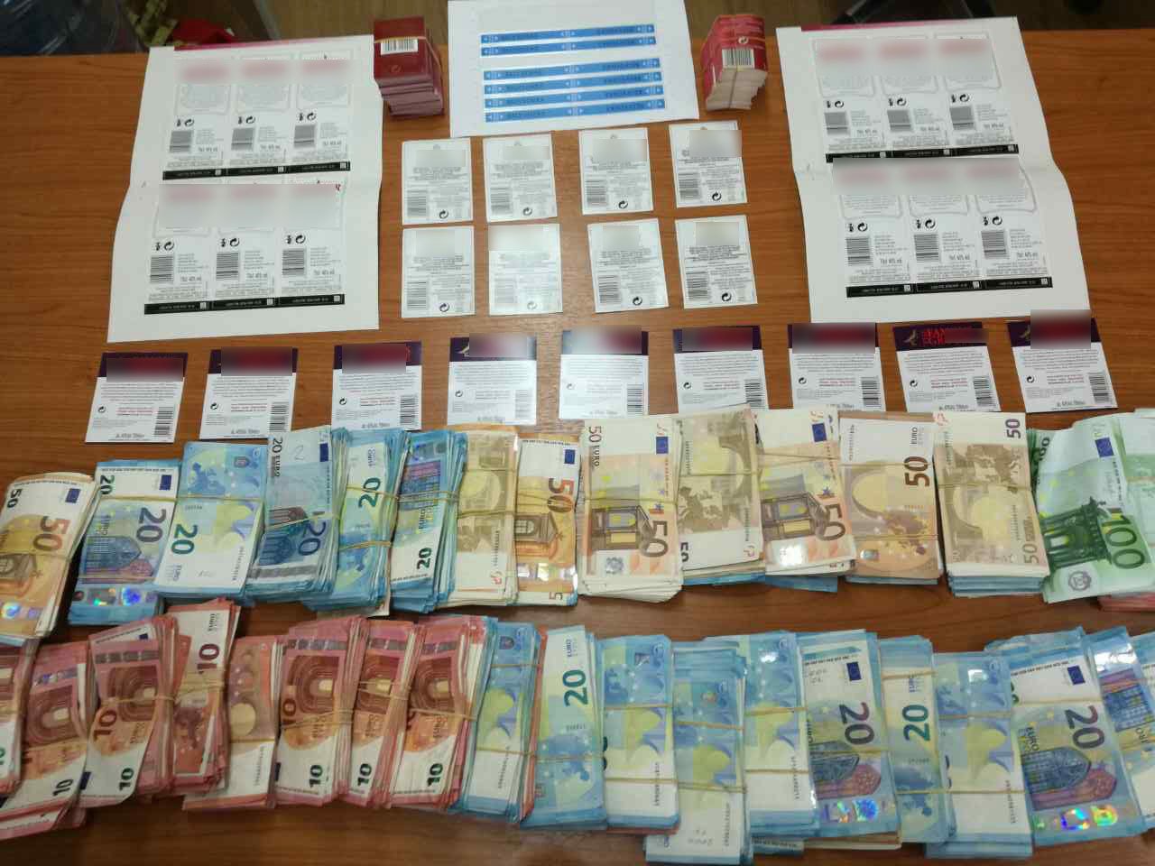 Επιπλέον, 64χρονος ημεδαπός φαίνεται να προέβαινε στην κατάρτιση πλαστών αυτοκόλλητων ετικετών, τις οποίες στη συνέχεια διέθετε στην εγκληματική οργάνωση.