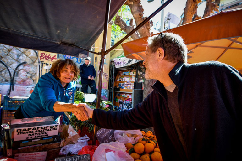Σε μία από τις ωραιότερες λαϊκές αγορές της πόλης, στην ιστορική γειτονιά των Εξαρχείων, ο Παύλος Γερουλάνος είχε την ευκαιρία να συνομιλήσει με τους παραγωγούς και τους επαγγελματίες, τους κατοίκους της γειτονιάς αλλά και τους τουρίστες που επισκέπτονται την Αθήνα και φαίνεται να προτιμούν σταθερά τη συγκεκριμένη λαϊκή στο κέντρο της πόλης για να δοκιμάσουν τα ελληνικά προϊόντα. Ψώνια για το οικογενειακό τραπέζι έκανε και ο υποψήφιος Δήμαρχος επιλέγοντας προϊόντα από κάθε γωνιά της Ελλάδας.