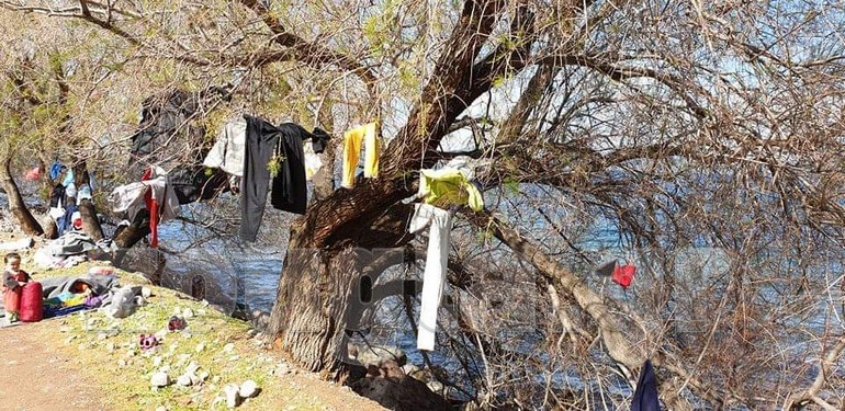 Στη θέση Άγιος Δημήτριος, 3 χλμ. από τη Σκάλα Συκαμιάς παραμένουν οι 42 πρόσφυγες και μετανάστες που έφτασαν χθες με φουσκωτή βάρκα στη Λέσβο. Οι 19 είναι ανήλικοι ανάμεσα τους μικρά παιδιά και βρέφη.